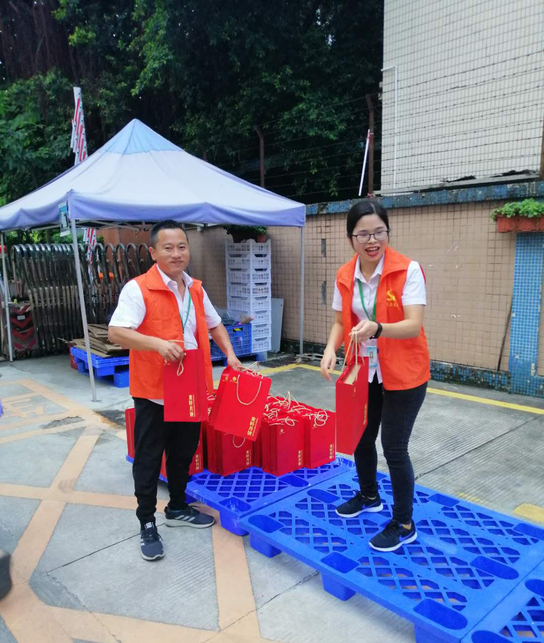 雅香麗人有序的領(lǐng)取公司發(fā)放的國慶中秋雙節(jié)福利~