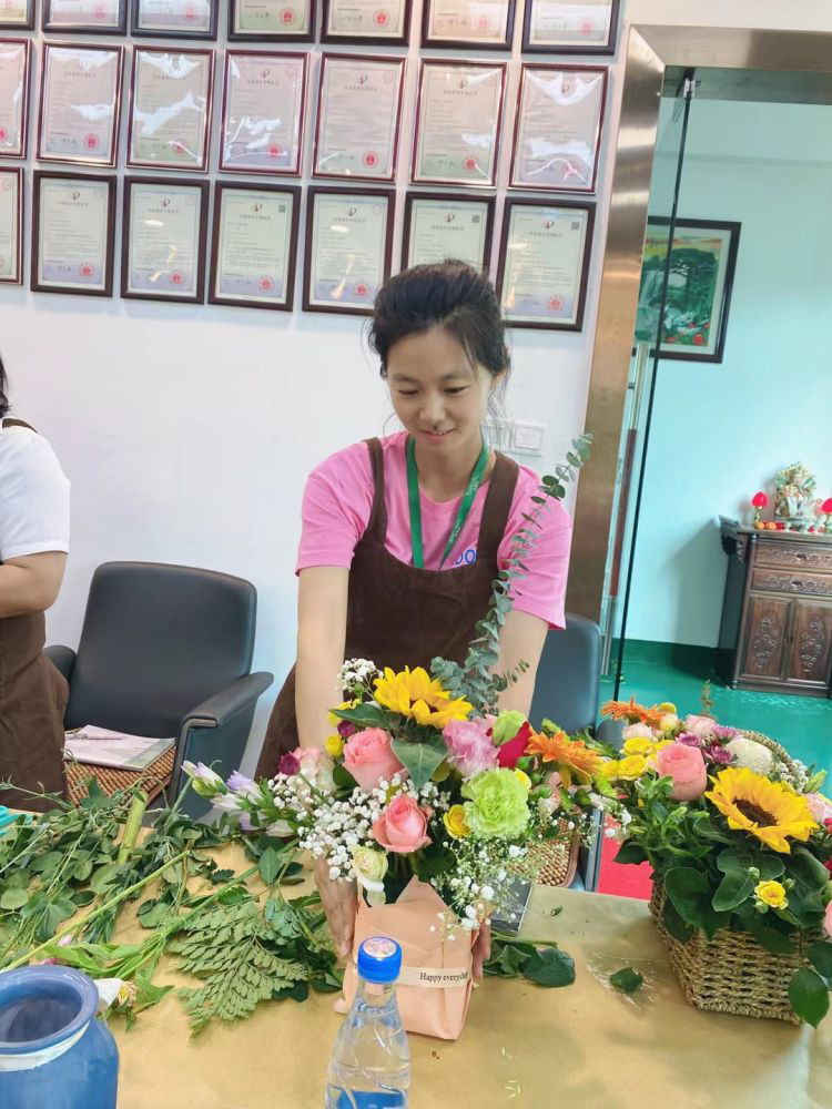 雅香麗化妝用品(深圳)有限公司 邀請專業(yè)插花師為員工講解插花技巧 關愛員工的生活與工作 快樂工作 快樂生活~